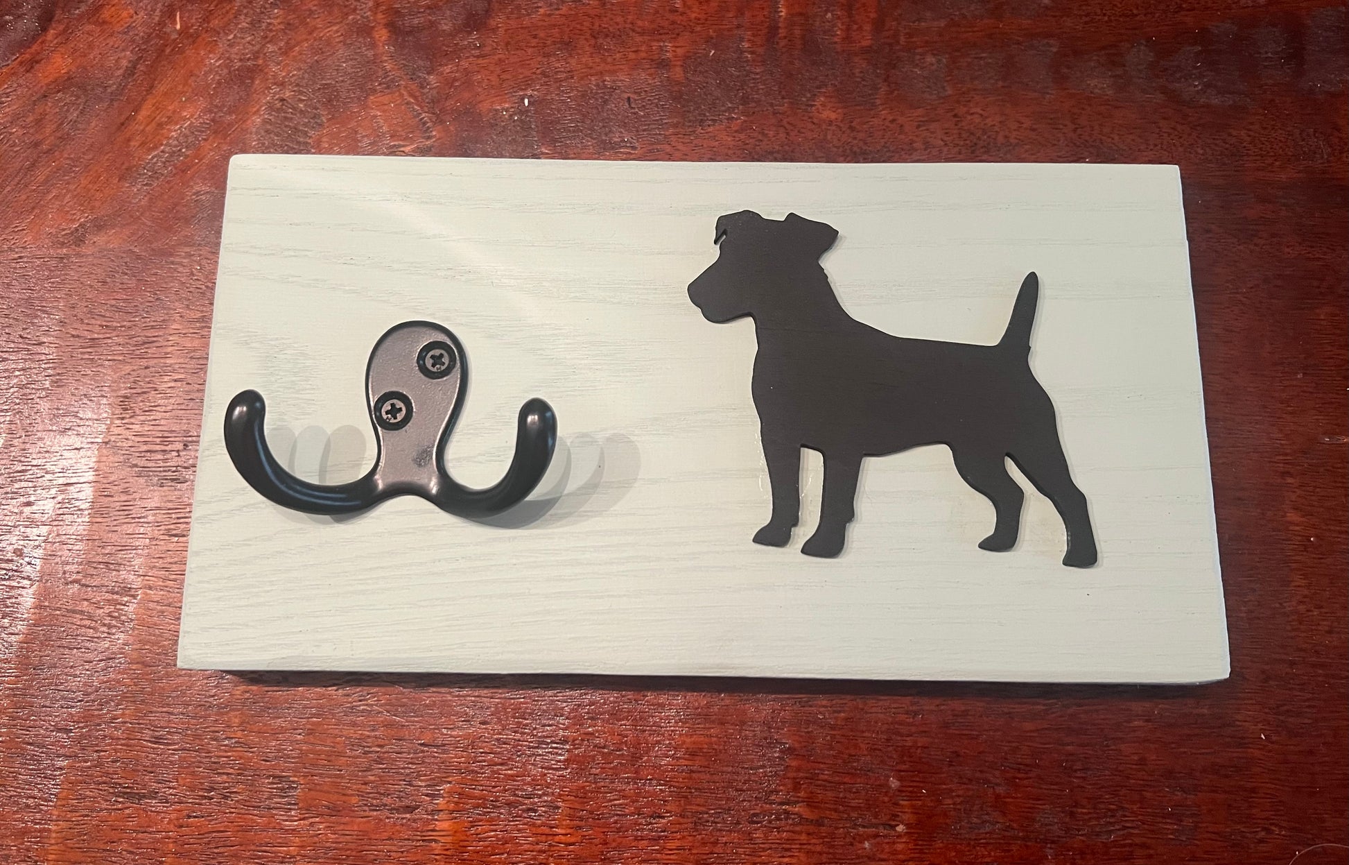 Wall mounted pet leash holder. Can be customized with your pets name.